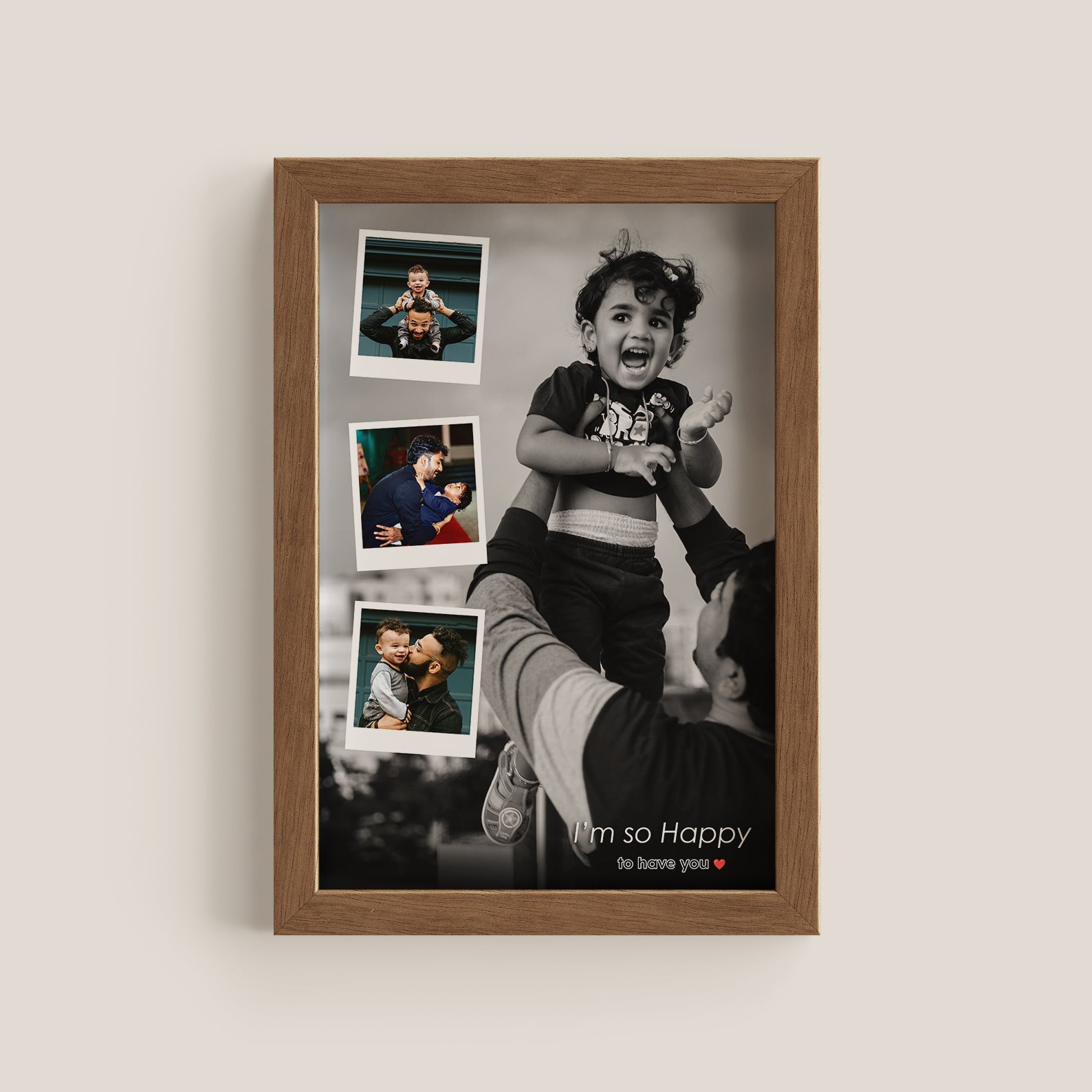 This custom 4 image frame allows you to display cherished memories with your father in a unique and personalized way. With space for four images, you can showcase your special moments together and celebrate the love between a father and child. A perfect gift for any occasion.